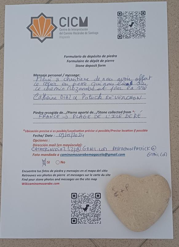 "Merci à Christiane de nous avoir offert ce coeur en pierre qui nous lie sur ce chemin Mozarabe et pour la vie.